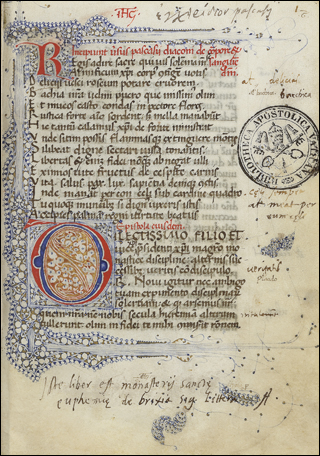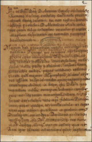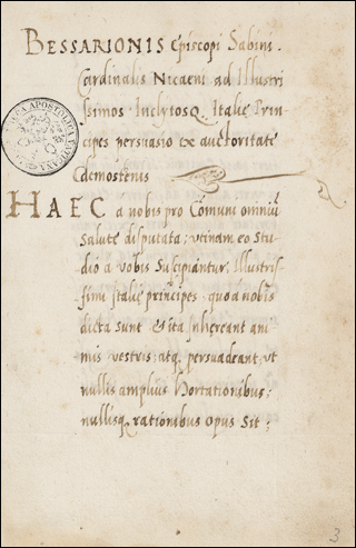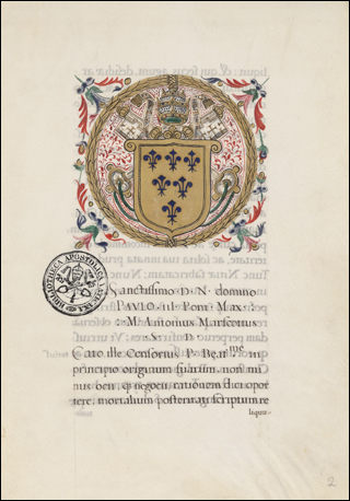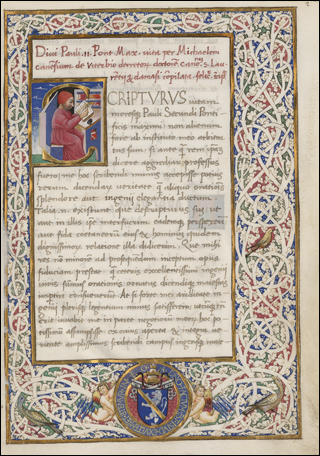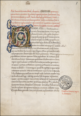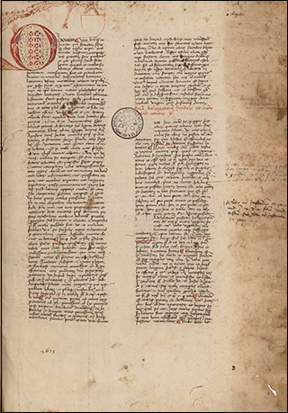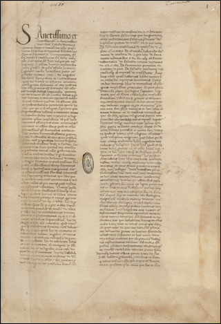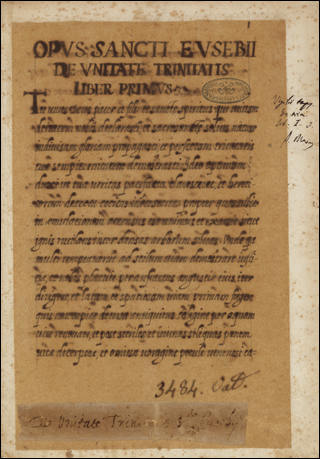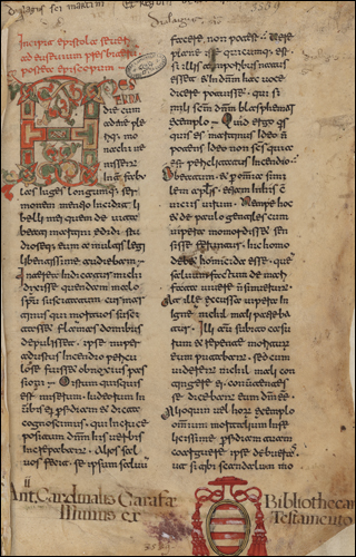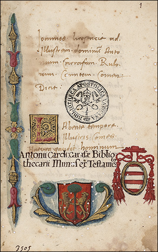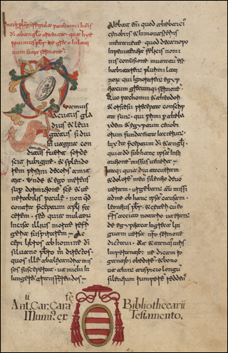 From the library of Juan de Torquemada. See Izbicki, Thomas-M. “Notes on the Manuscript Library of Cardinal Johannes de Turrecremata.” Scriptorium 35, no. 2 (1981): 306–11. (https://doi.org/10.3406/scrip.1981.1228).