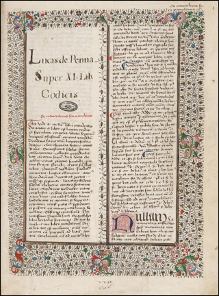 Vat.lat.2298, Lucas de Penna Commentarium in undecimum Codicis librum (15th C)