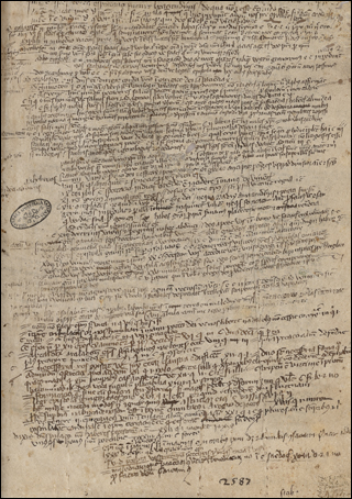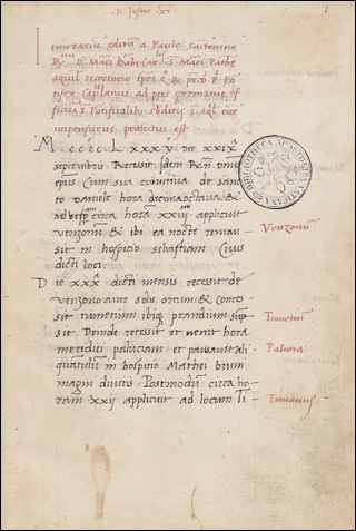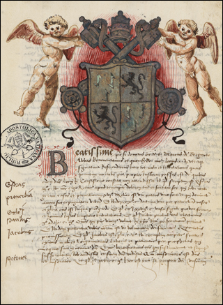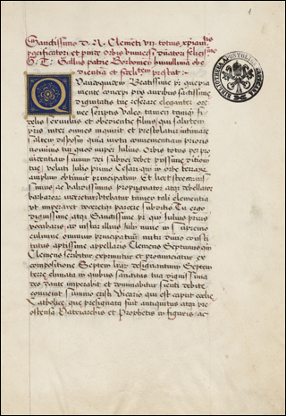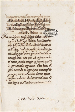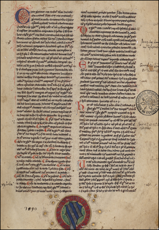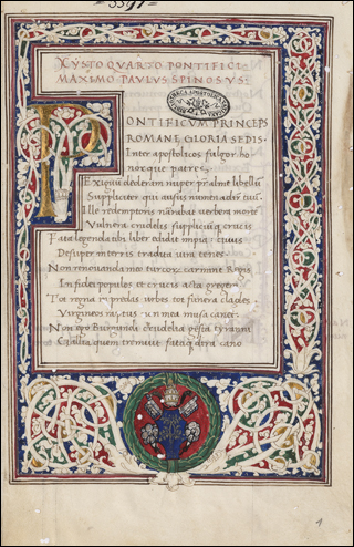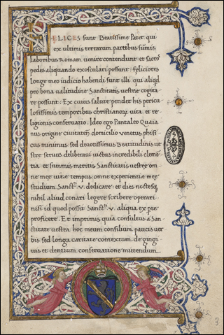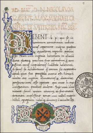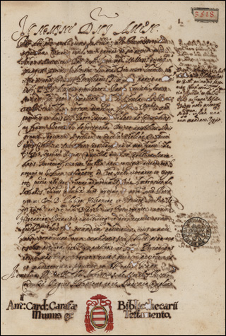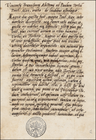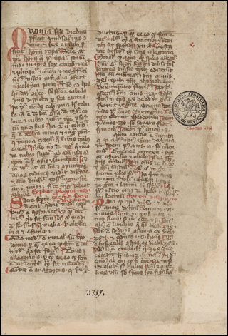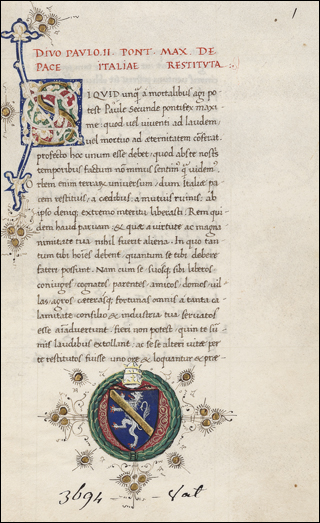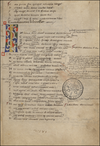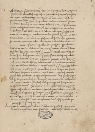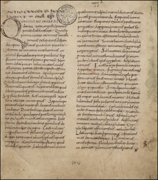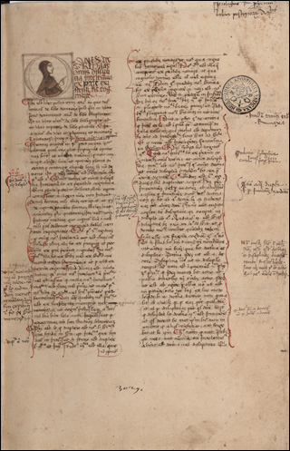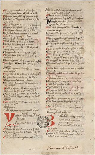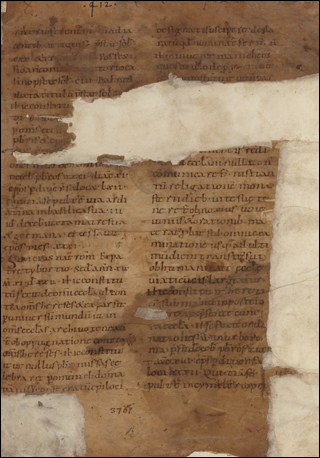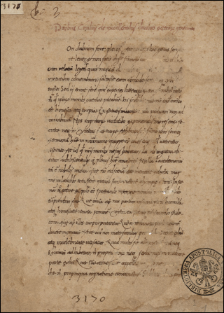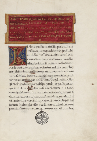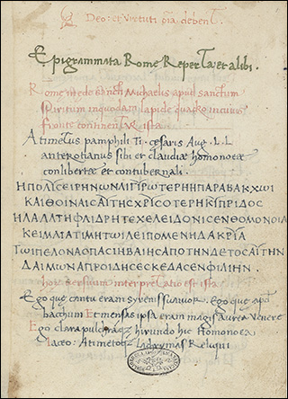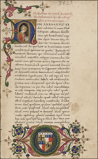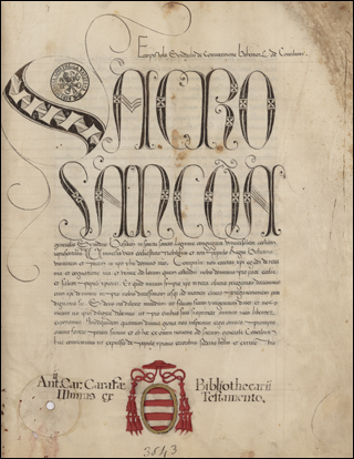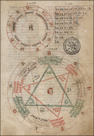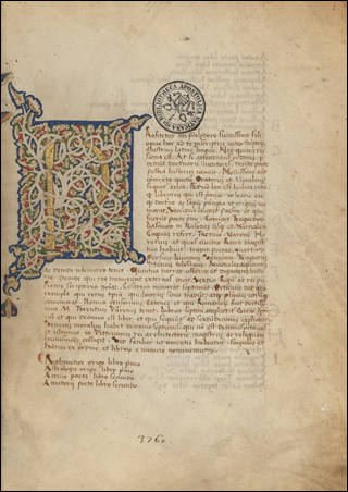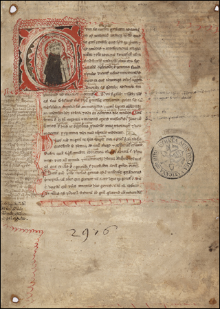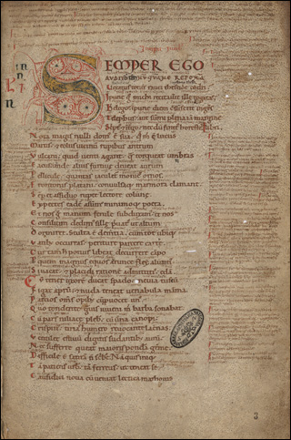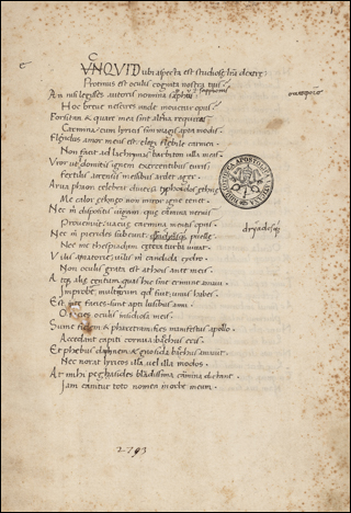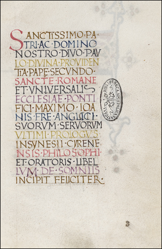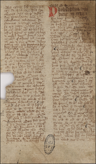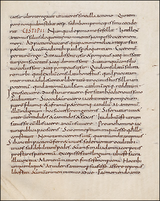 Start of the text rubbed away. Title of the work at the bottom of the page