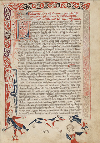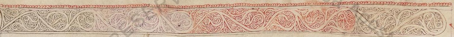 The bottom border is from Vat.lat.3939 a northern Italian (Venetian?) book of regulations with delightful red and blue ink decorations on f.1r, of which this is a small part.
