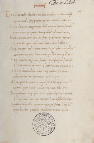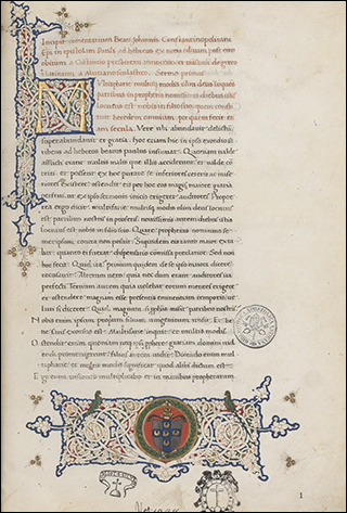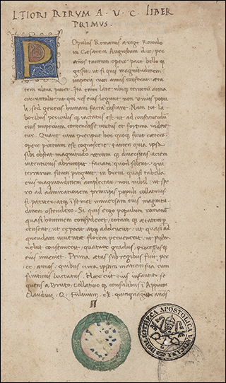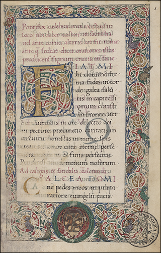 Decorated by Gioacchino de’ Gigantibus, see I Libri dei Papi Umanisti