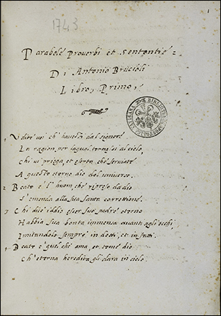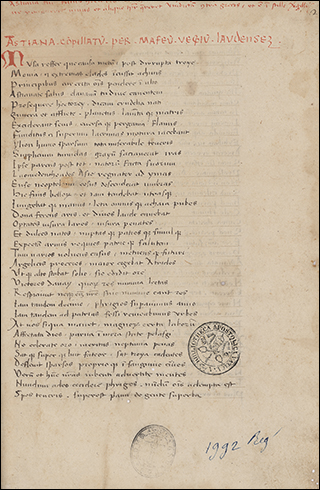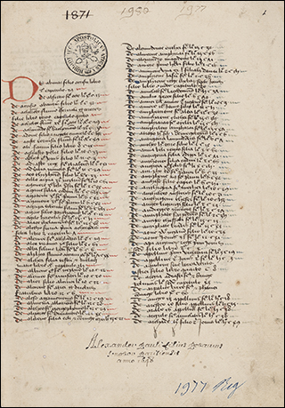 Codices Palatini Entry, from Heidelberg. First section is ff.1-296, second is ff.297-316