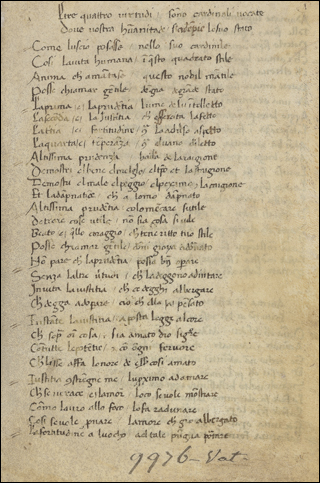 Codices Palatini Entry, Katalog der Palatina (1581). Geschichte; 1581