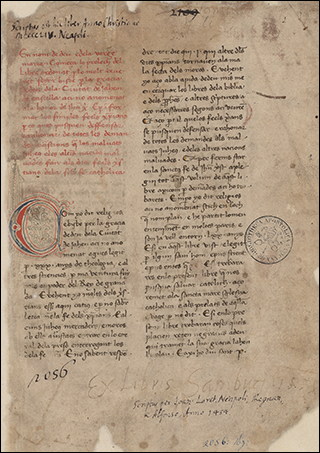 Dated and localized to Naples on f.1r by th scribe Joan Loret. See PhiloBiblon