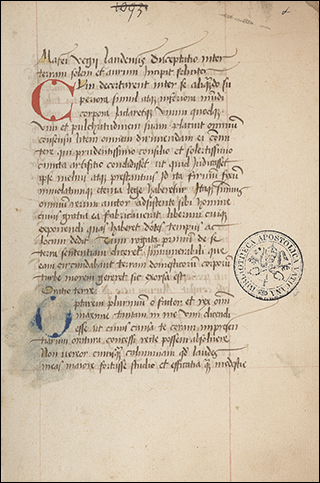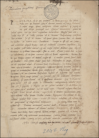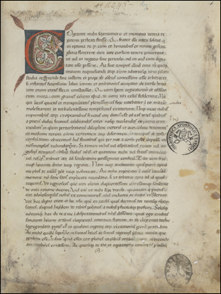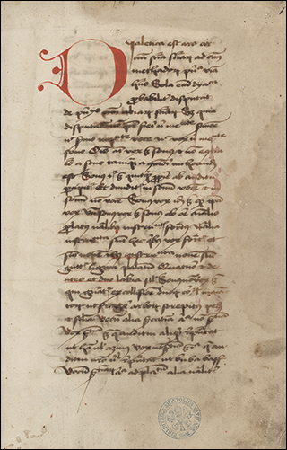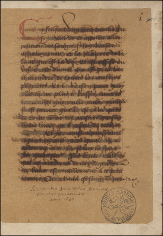 See Biblissima. First page is heavily damaged, with a large piece replaced