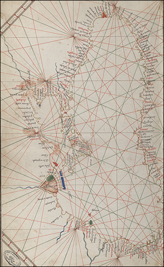 Made in Venice, as per Campbell, Tony. “Census of Pre-Sixteenth-Century Portolan Charts.” Imago Mundi (Lympne), vol. 38, no. 1, 1986, pp. 67–94.
