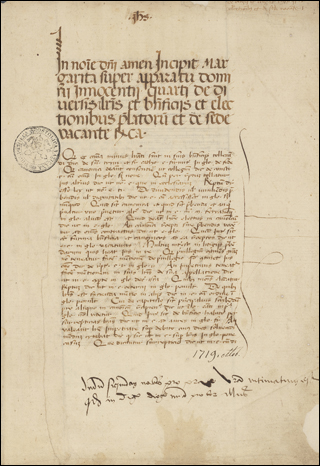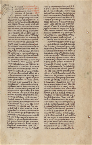 To the right is f.3r from Ott.lat.1757, a 13th C copy of Papias's Elementarium, considered one of the first true dictionaries. This manuscript is incomplete, the main text was finished, but none of the larger capitol letters were added in. Still visible are the small letters in the open spaces, all 'a's on this page, which were left as indications for the rubricator, to be erased when the larger letters were completed.