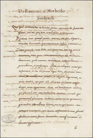 Incipit: De Ratione & Methodo Studendi. Quid quid ab hominibus in hac uita geritur aut naturales functiones spectat