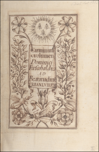 At the bottom is part of the border decoration from f.1r of Barb.lat.1912, another 17th C volume of poetry dedicated to Francisco Barberino