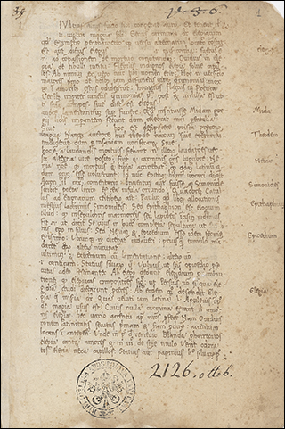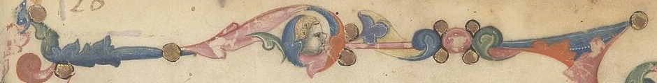 At the bottom is a fragment of the top border from f.1r of Ott.lat.1952. This is a 14th C copy of Solinus' Collectanea rerum memorabilium a collection of facts and "facts" about the natural world, organized through geography.
