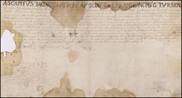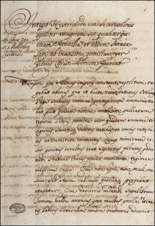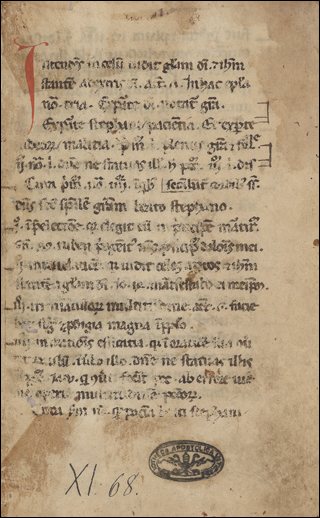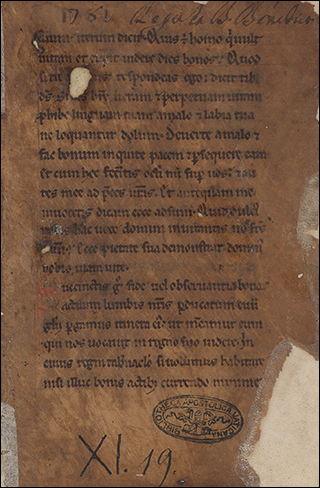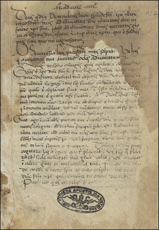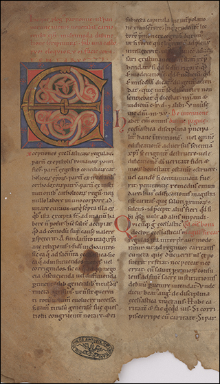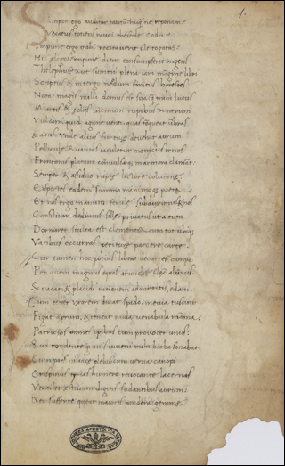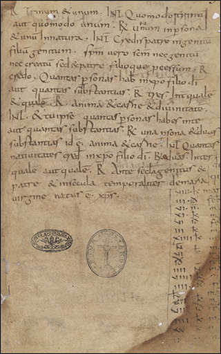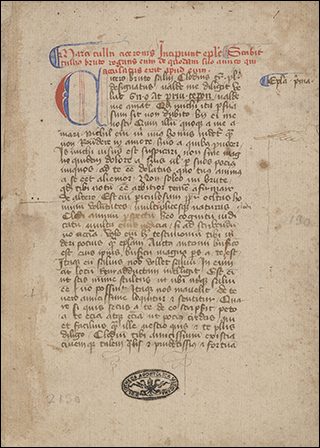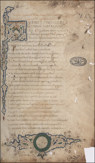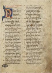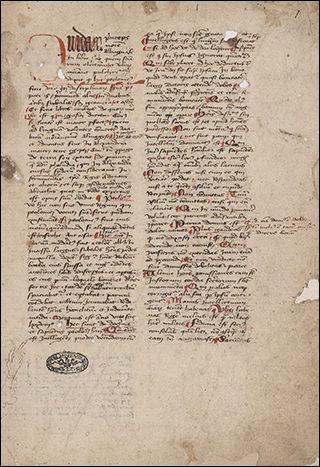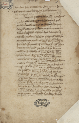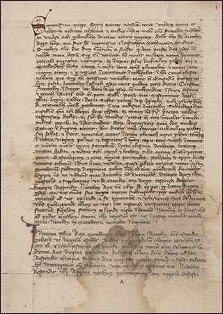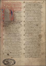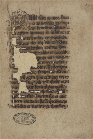 See Biblissima. First page is heavily damaged, with a large piece replaced