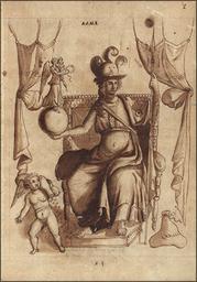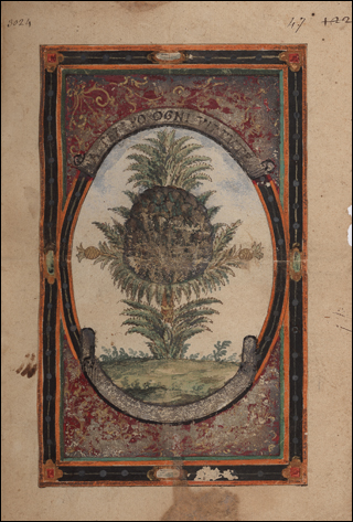 Starts on f.102, then skips to f.128. Seems to be a collection of printed engravings. The caption on f.102r is a anagram