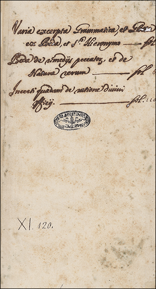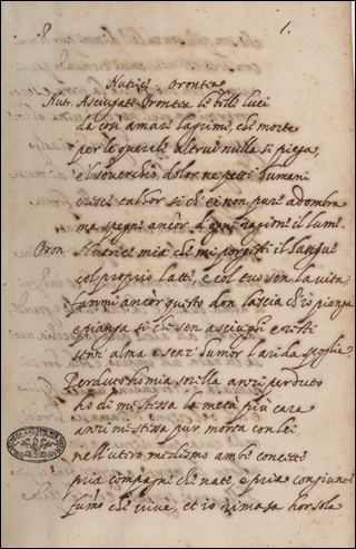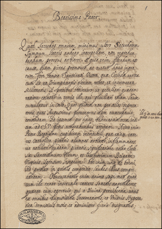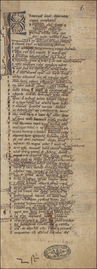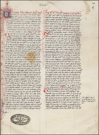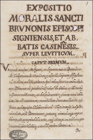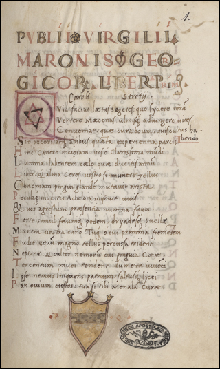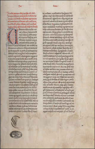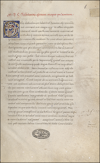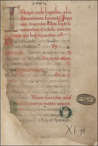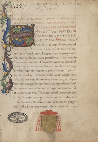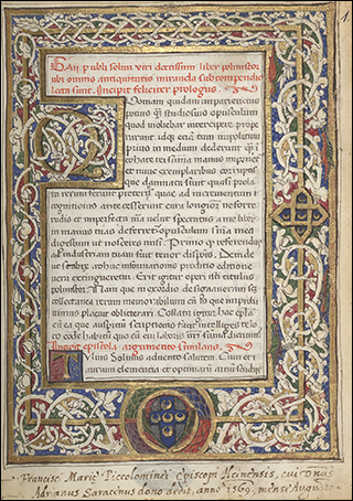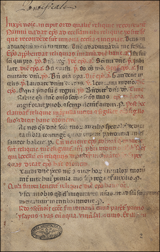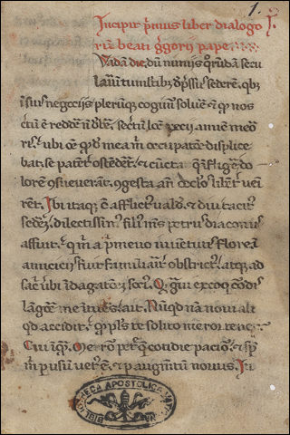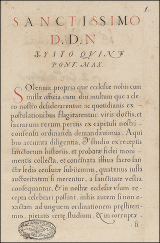 a long rubric at the top of f.1r was already illegible by the 19th C catalogue of Pieralisi