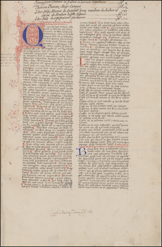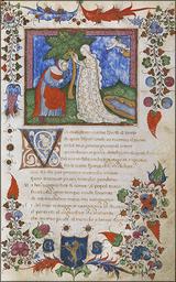 See Biblissima. This manuscript was made for the Duke of Genoa, and is dated and signed in colophon on p.209 May 27, 1411 (but CCCCXI is redone in later ink, perhaps 1461 was meant)