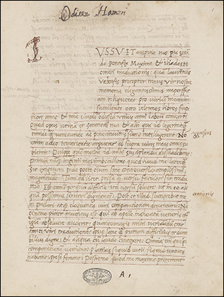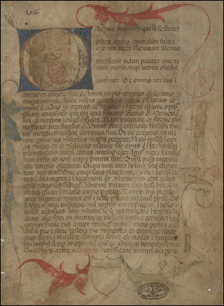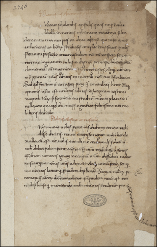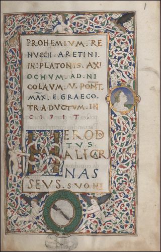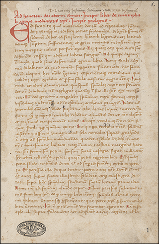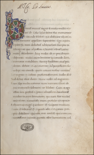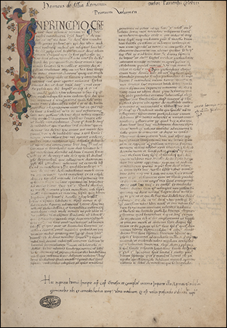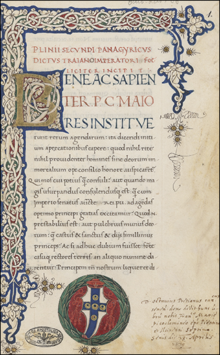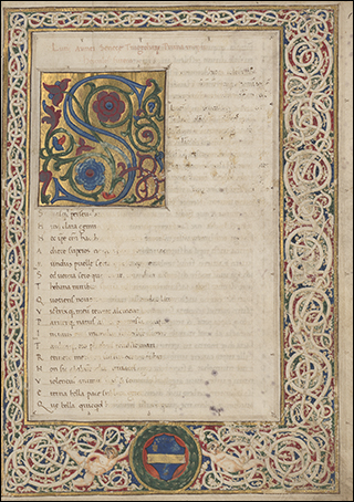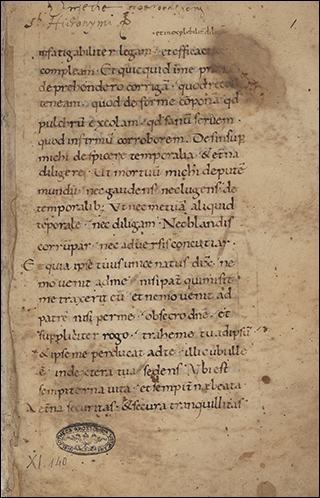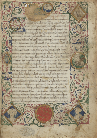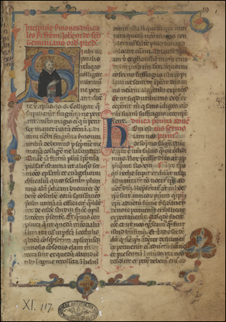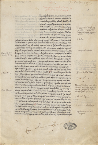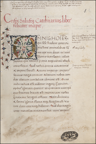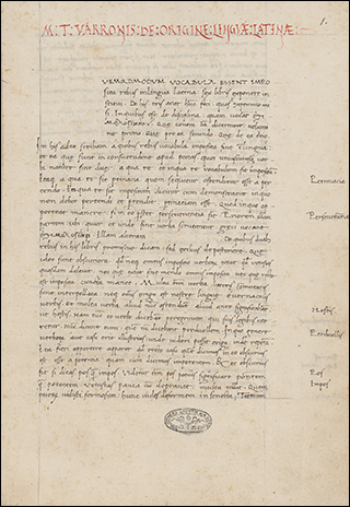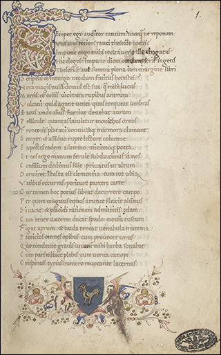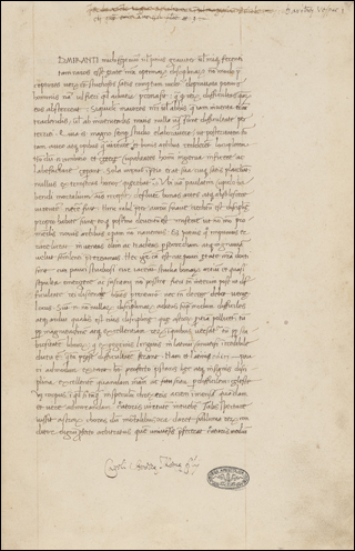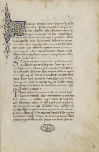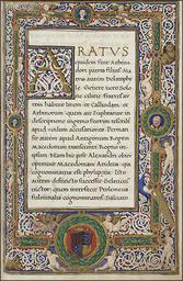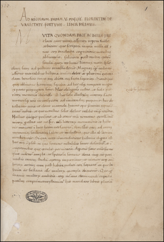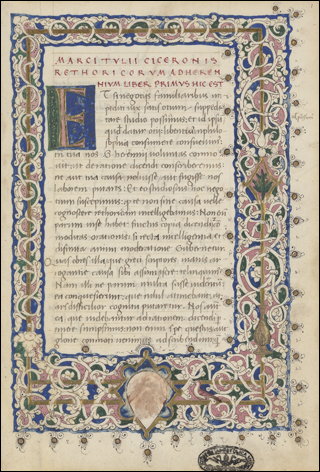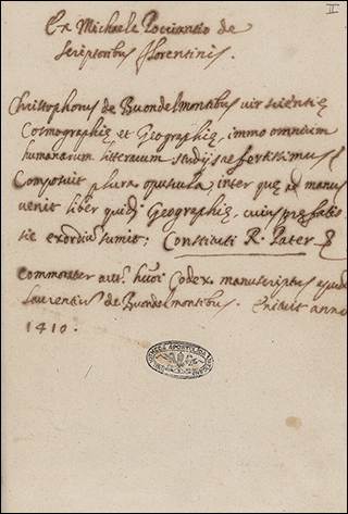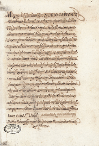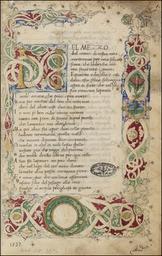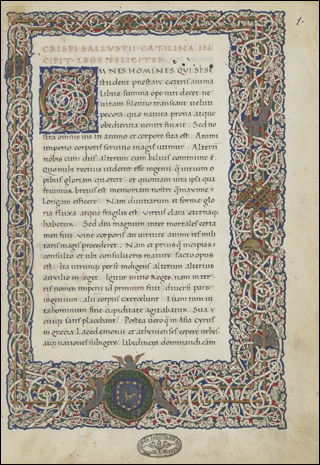 See Biblissima. Scribe: Pietro Ciacchi. Signed and dated "1410" on f.96r, but the script looks later. Ullman posits an L was forgotten, either before (1460) or after (1440) the X