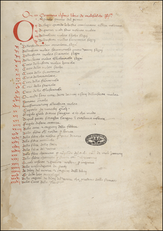 Secretary: Ioanne Ciampolo. Table of Contents on ff.IIIr-VIIIv