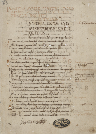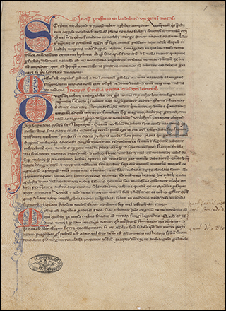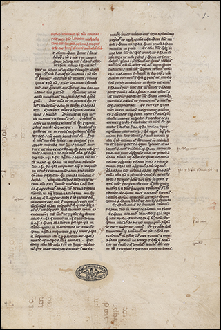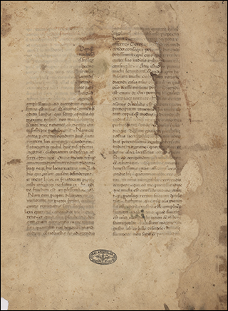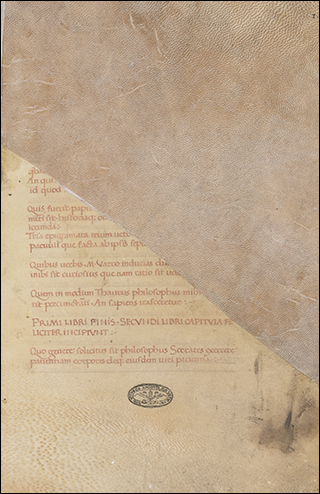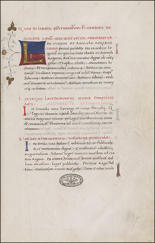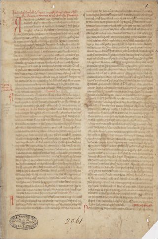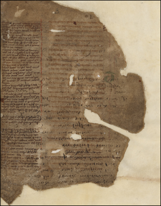Palimpsest over the code of Justinian. First bit of each book cut away