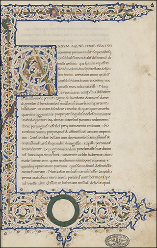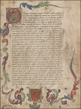 Note there are 14th and 15th C replacement leaves and decorations added to the orignal MS. See Biblissima