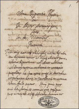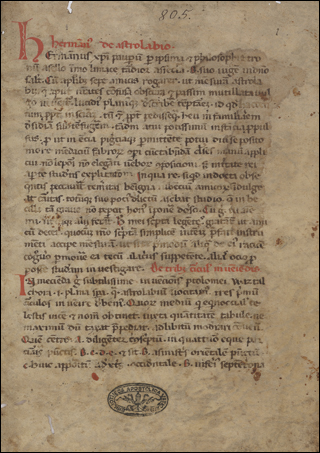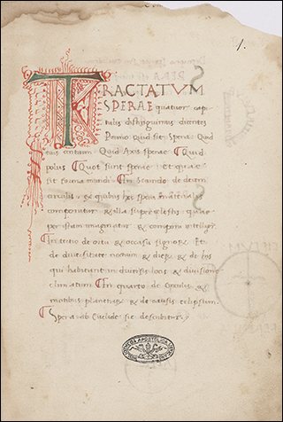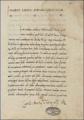 See PAL for siglum A.2.5, scribe: Giovanni Pontano. F.1r begins with an incomplete horoscope diagram