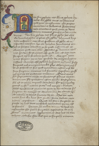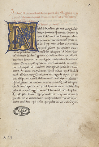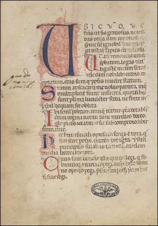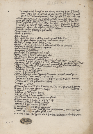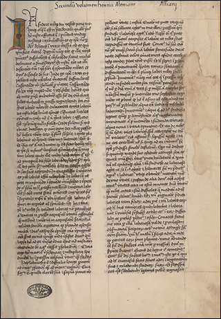 See Jordanus #9960. Composite of two unrelated manuscripts, the first of the 13th C, the second, starting f.379, of the 14th.