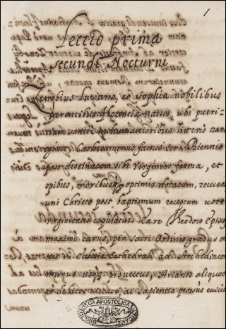 See Biblioteca apostolica vaticana. (1974). Saint Thomas and Saint Bonaventure in the Vatican Library: Exhibit on their seventh centenary (1274-1974) : catalogue. --. Biblioteca Apostolica Vaticana. Written before canonization of Bonaventure
