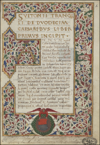 Prefaced with Family tree of the 12 Caesars, print from 1528. Table of contents on ff.XIr-XXIVv