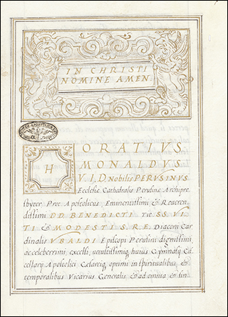 Signed and dated by scribe and illustrator on f.IVr, "Franciscus Pallantes Cappellanus Triremis S. Sebastiani"