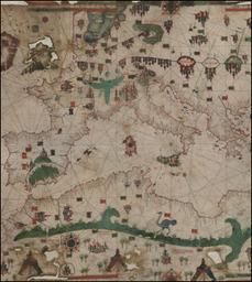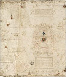 Currently there are 10 nautical maps of the 13 maps in the collection. Although the numbering goes up to XVI, according to a note from José Ruysschaert numbers XII, XIV and XV never reached the library. In the inventory preserved in Borg.lat.767, on ff. 253r-254r, the full sixteen are listed.