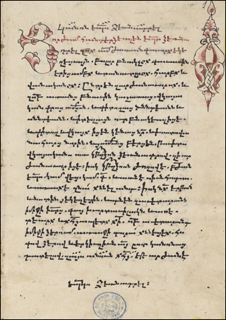 See Biblioteca apostolica vaticana., Conybeare, F. C. (Frederick Cornwallis)., Tisserant, E. (1927). Codices armeni Bybliothecae vaticanae Borgiani. Romae: Typis polyglottis vaticanis. pp. 65-67. autograph copy