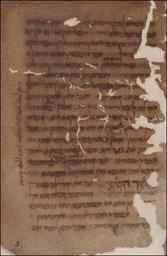 Sephardic caligraphic semi-cursive. Includes the weekly parsha indication for the Sephardic rite. Page was ruled for Masorah Magna, but it was never added.