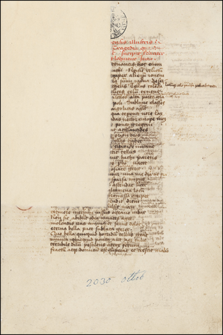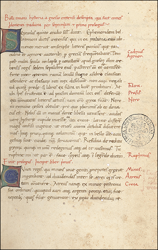 See Biblissima, ff.Ir-Vv are from a 14th C Terence, the rest from a 13th volume