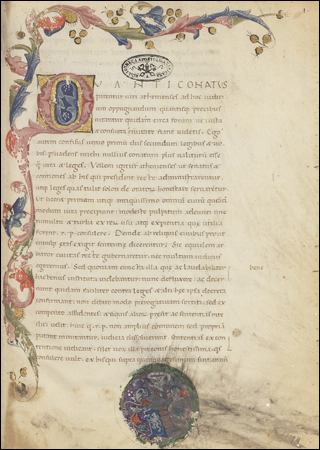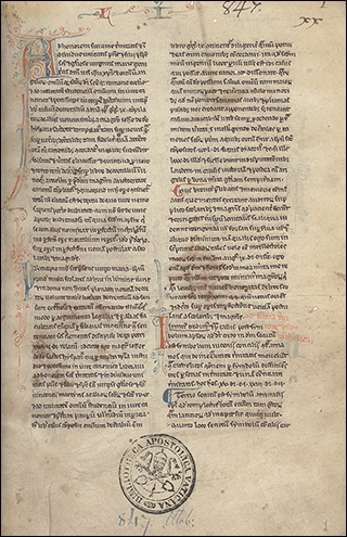 Pseudo-Isidorian Decretals, written by a scholar (or group of scholars) using the pseudonym of Isidore Mercator. They were probably a group of Frankish clerics writing in the second quarter of the 9th century. To defend the position of bishops against metropolitans and secular authorities, they created documents purportedly authored by early popes and council documents. This manuscript is held to be the best of class A1 as used by historians working on this extraordinary medieval detective story. For more: Wikipedia