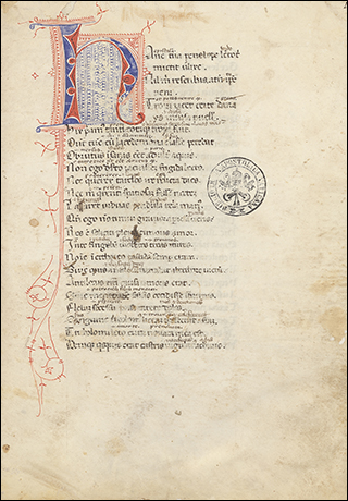 Formerly part of the library of Matthias Corvina, , See Bannister, H. M. Monumenti vaticani di paleografia musicale latina ID# 778[ Title: Pontificale Romanum, Folio: passim, Century: 1474ca, Notation: quadrata]