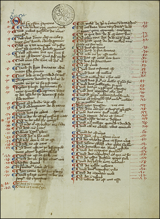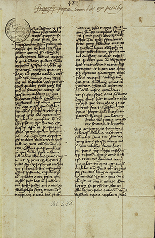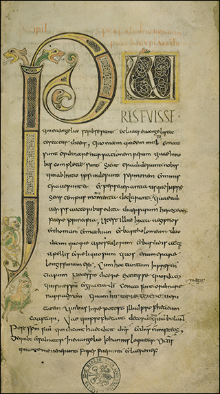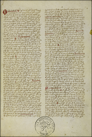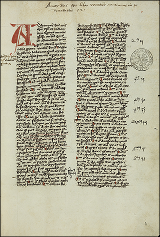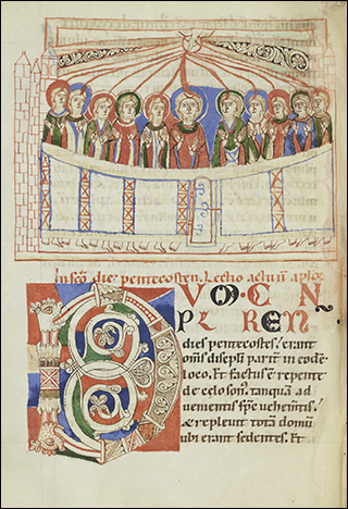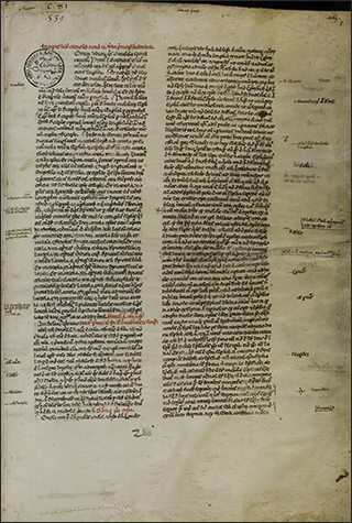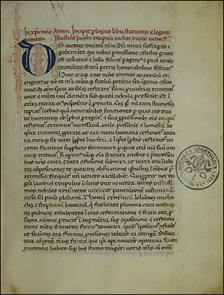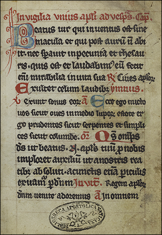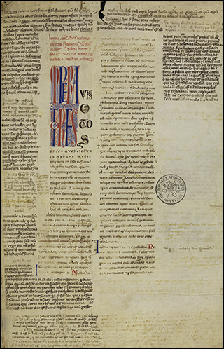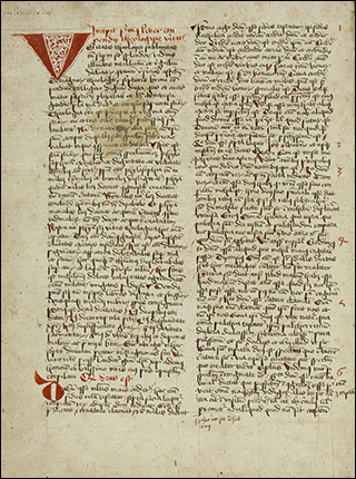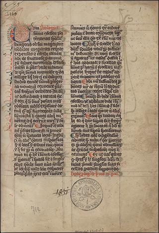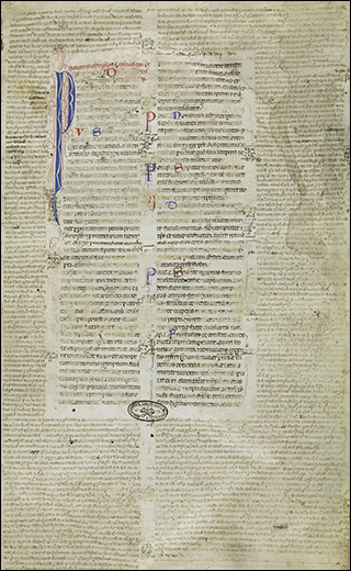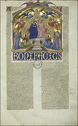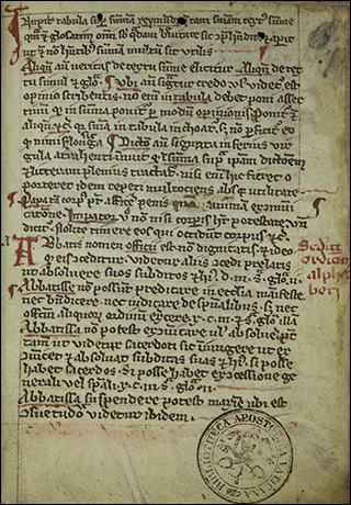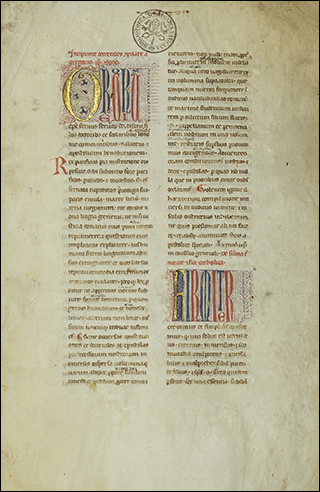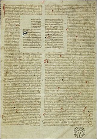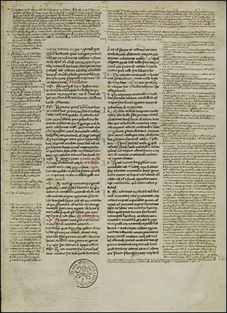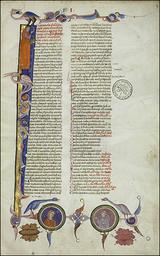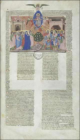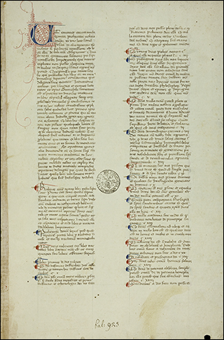 Codices Palatini Entry, Biblia; Novus Testamentum: Apocalypsis; Epistolae catholicae et Actus Apostolorum cum glossa ordinaria; Frankreich (wohl Paris); 13. Jh.; 3. Viertel