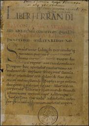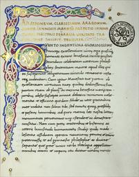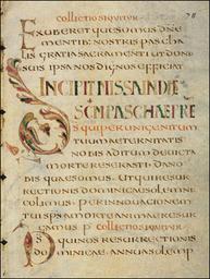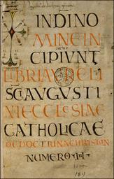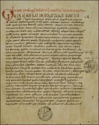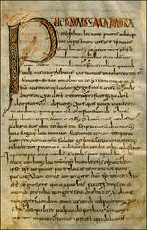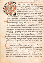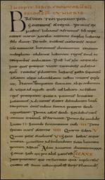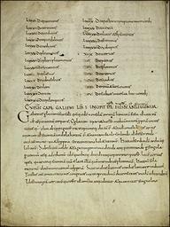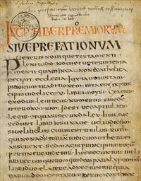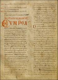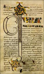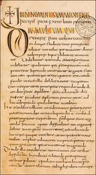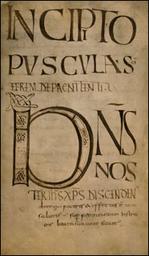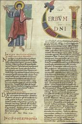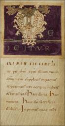 From Lorsch, Codices Palatini Entry, Biblia; Vetus Testamentum (Genesis-Liber II Paralipomenon cum prologis Hieronymi et capitulis)Lorsch; 1. Hälfte 9. Jh., , See Bannister, H. M. Monumenti vaticani di paleografia musicale latina ID# 34[, Folio: Ir, Century: 11, Source: tedesco, Provinance: Lorsch (OSB), Notation: Neumi accenti]