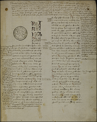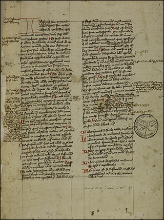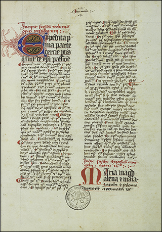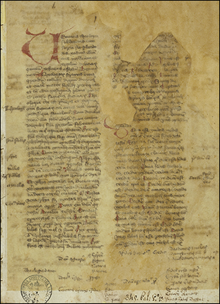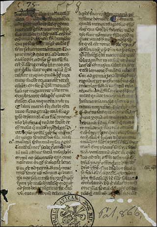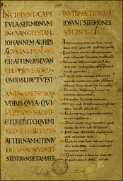 Codices Palatini Entry, Biblia: Evangelia secundum Matthaeum et Johannem cum glossa; Frankreich (?); vorgebundenes Fragment: Montpellier (?); Ende 12. Jh. bis 1. Hälfte 13. Jh. (?); vorgebundenes Fragment: 1. Hälfte 14. Jh.; nach 1313 (?)