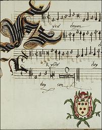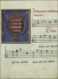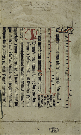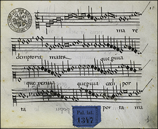 See Bannister, H. M. Monumenti vaticani di paleografia musicale latina ID# 610[Cover, fragment of 15th C German Antiphonarium], Codices Palatini Entry,