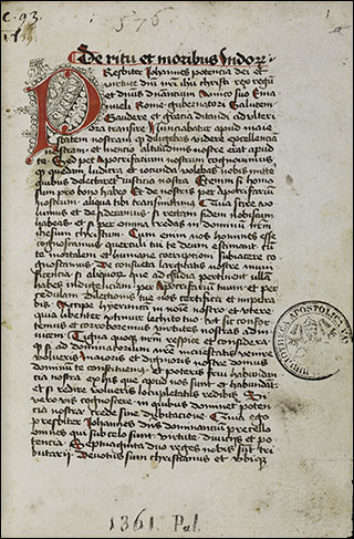Codices Palatini Entry, from Erfurt, scribe: Iohannes Stirner (see colophon f.573r)
