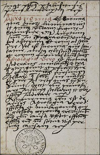 Codices Palatini Entry, Lectura in Apocalypsim ad usum studii Heidelbergensis; Heidelberg; 15. Jh. drittes Viertel; vor 1474