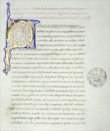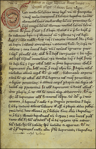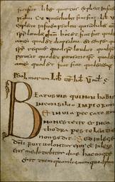 CLA# 1.78, Script: Anglo-Saxon Minuscule Written by Edilberict, son of Berictfrid (fol. 46), probably in the north of England. The tur-symbol points to an English script Written in rapid and expert fine minuscule. Each psalm begins with an uncoloured initial of strikingly angular Insular type, fol, Codices Palatini Entry, Anonymus; Glossa in psalmos; Nordengland; 8. Jh.