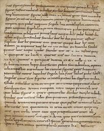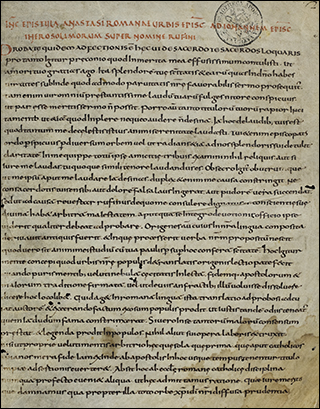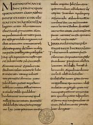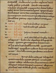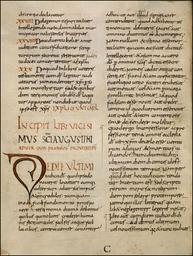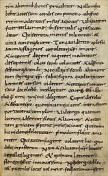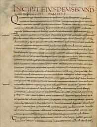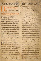 CLA# 0.1768, Script: Imitation Anglo-Saxon Majuscule Written on the Continent in a centre with Insular traditions, apparently for a church dedicated to St Martin. The Erembertus in Script, by two hands, is apparently a poor imitation of Anglo-Saxon majuscule, betrayed by the constantly majuscule forms of **R, Codices Palatini Entry, Psalmi et commentum in psalmos; Worms (?); letztes Drittel 8. Jh.; vor 793