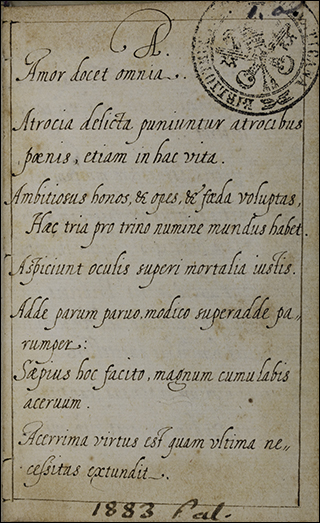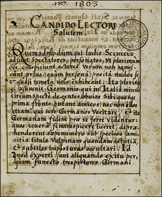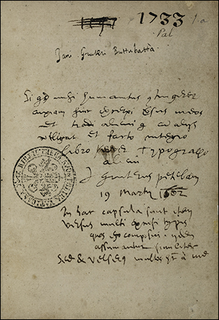 Codices Palatini Entry, printed book with manuscript additions, mostly written in Heidelberg