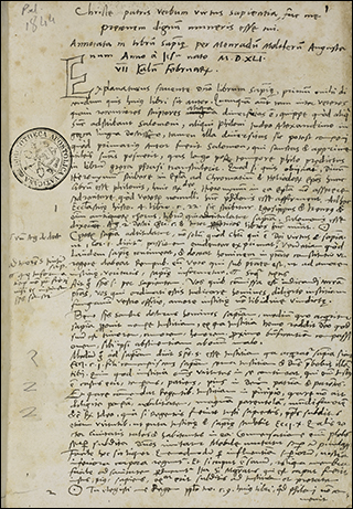 Codices Palatini Entry, Melanchthon; Philipp; Commentarius in Psalmos; Wittenberg; um 1547-1548
