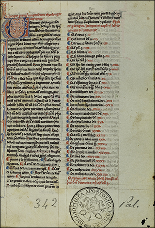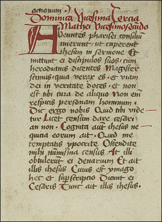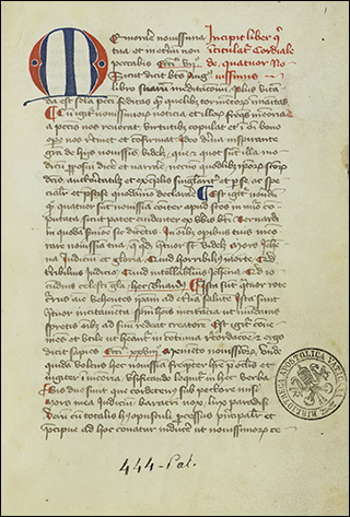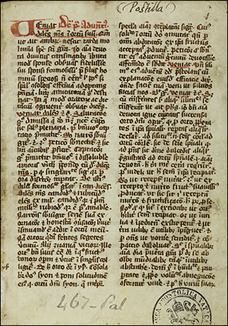 Codices Palatini Entry, Nikolaus von Lyra; Postilla super quatuor Evangelia; Oberitalien (Verona?); 14. Jh. letztes Viertel (um 1379)