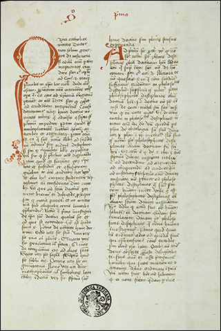 Codices Palatini Entry, from Italy. Colophon on f.129v dated and signed Johannes Ludouicus de Lambertatiis