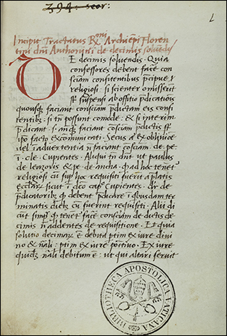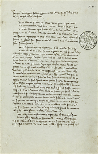 Codices Palatini Entry, Theologische Sammelhandschrift (Jacobus de Lausanne; Gotfriedus Voraviensis; Anselmus Cantuarensis u.a.)Süddeutschland (Ehingen?); 1419