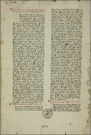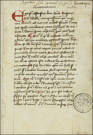 Codices Palatini Entry, Nikolaus von Lyra; Postilla super epistulas S. Pauli; epistulas canonicas; Actus apostolorum et Apocalypsim; Oberitalien (Verona?); 1379