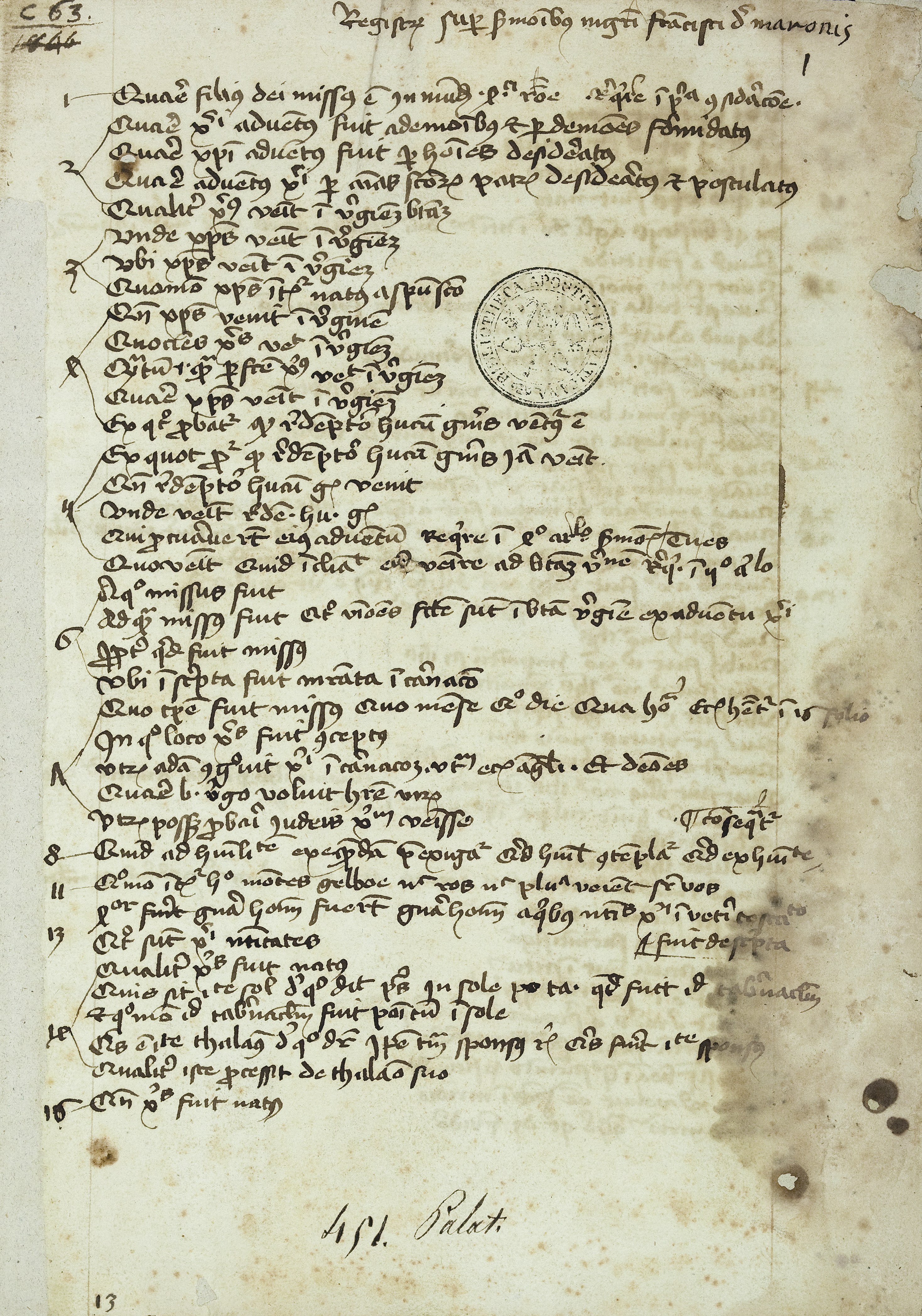 Codices Palatini Entry, from Heidelberg, Jena and northern Italy