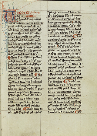 Codices Palatini Entry, Biblia; Novus Testamentum: Epistolae canonicae; Apocalypsis et Actus Apostolorum cum Glossa ordinaria; Frankreich (?); Ende 13.; Anfang 14. Jh.