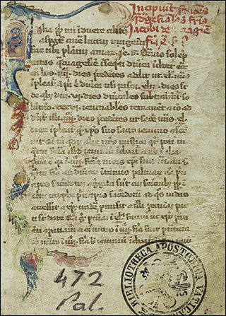 Codices Palatini Entry, Biblia: Epistula; Süddeutschland (?); 12. Jh. letztes Viertel bzw. 13. Jh. Anfang